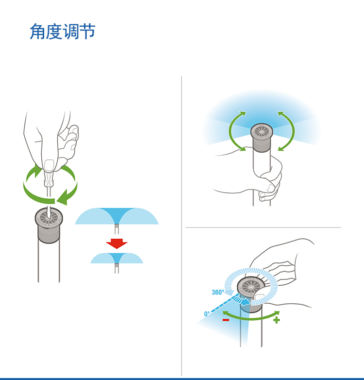 ? 帶棘齒的升降柱,即使在噴水時也能調節