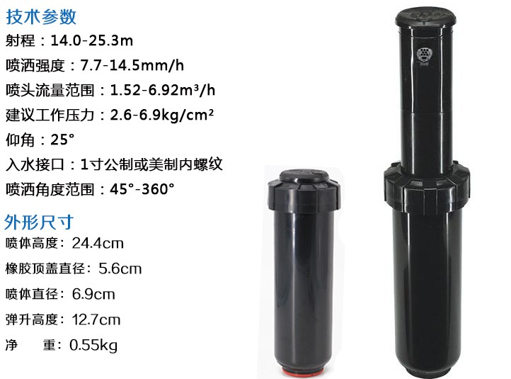 高強度可彈升噴頭,水潤滑的齒輪驅動,密封防止漏水。